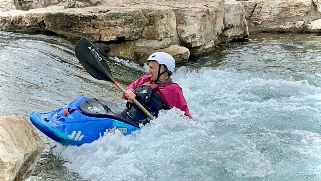 Shatha Alanssari is a level 2 ACA (American Canoe Association) certified kayak instructor, certified CPR and Wilderness First Aid and Level 4 Swift-water rescue.